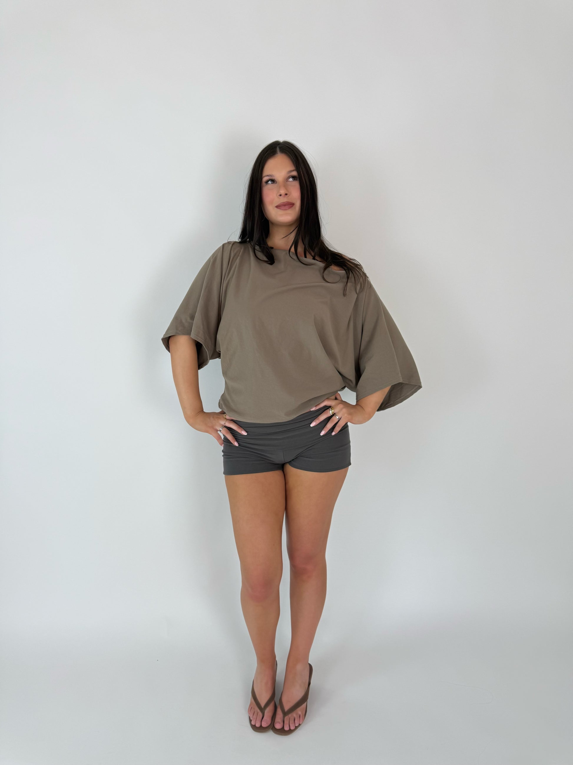 Designed and made in New Zealand. Named after a dear friend, the Julia Top is crafted from 100% organic cotton with a relaxed, off-shoulder silhouette that exudes effortless chic. Made in 100% organic cotton, its oversized fit is breathable and perfect for warm days or laid-back occasions. In a warm neutral mouse brown, it’s a timeless piece that instantly elevates any simple outfit with minimal effort.
